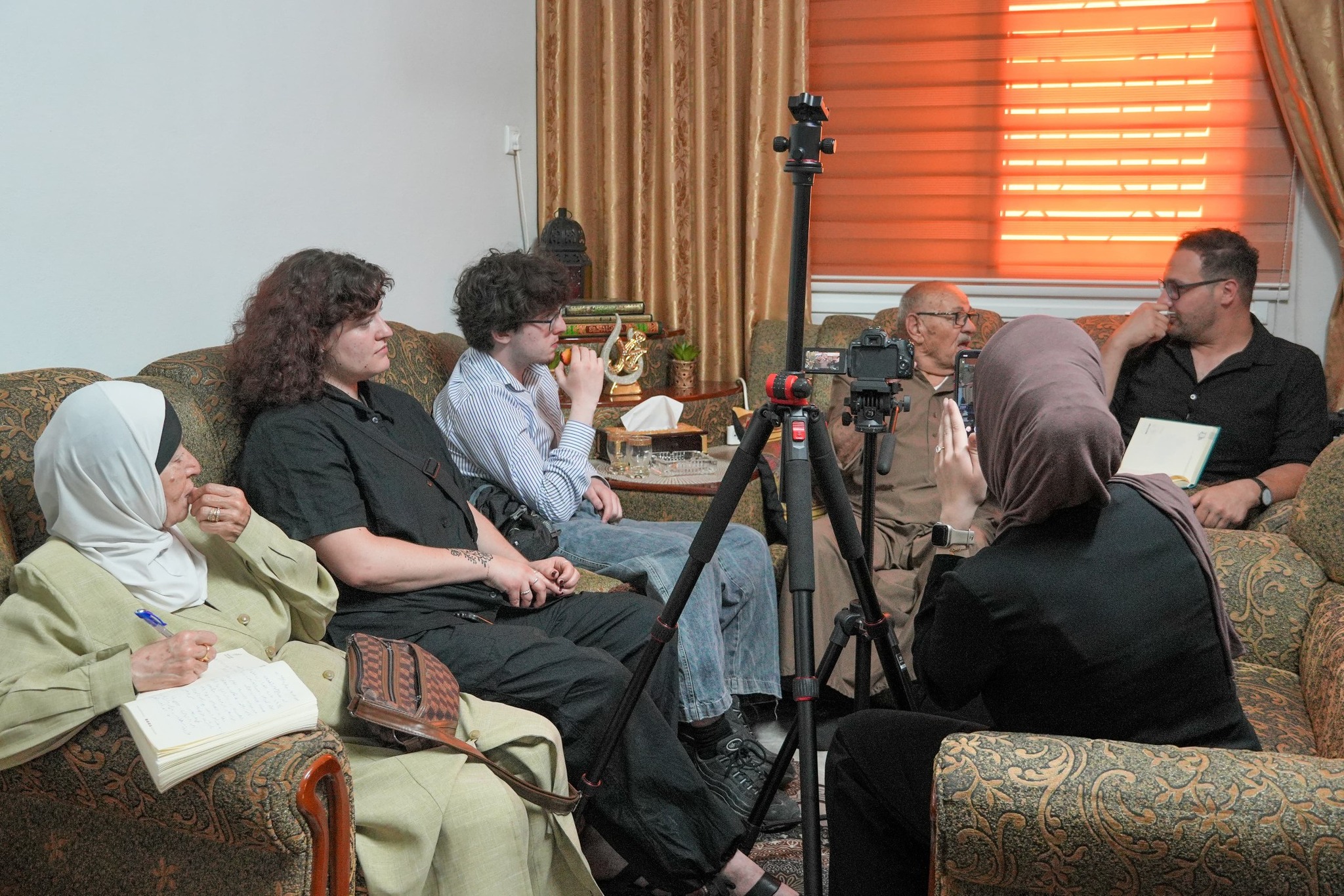 جانب من اللقاء الذي أجراه فريق التأريخ الشفوي التابع لنادي الندوة الثقافي يوم الأربعاء الموافق 30/7/2025 مع المربي الفاضل أ. أحمد جحشن من مواليد مدينة حلحول/ الخليل عام 1939م