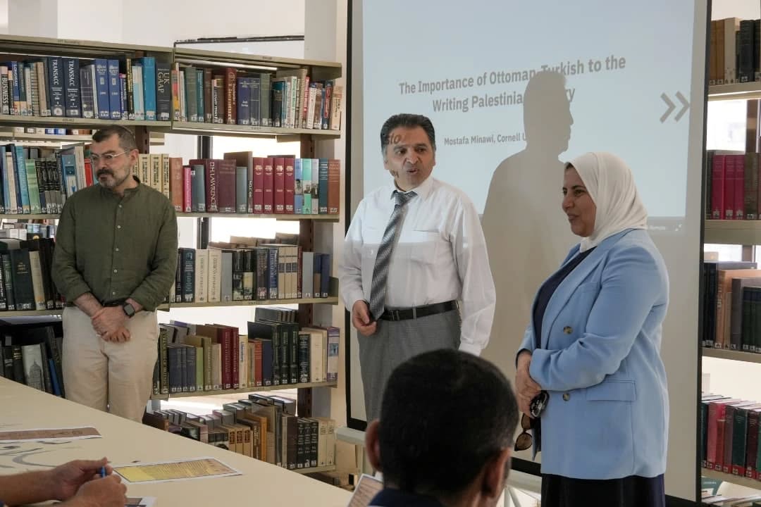 جانب من إطلاق ورشة عمل (اللغة العثمانية والتأريخ الأرشيفي) التي يقدمها د.مصطفى ميناوي/ جامعة كورنيل، يوم أمس الخميس الموافق 10\7\2025 في مكتبة جامعة الخليل، بحضور رئيس جامعة الخليل د.رغد الدويك، ومدير المكتبة د.صلاح أبو اسنين. وتنظم ورشة العمل بالتعاون بين نادي الندوة الثقافي وجامعة الخليل، ضمن فعاليات مشروع (ثقافة من أجل الجميع).