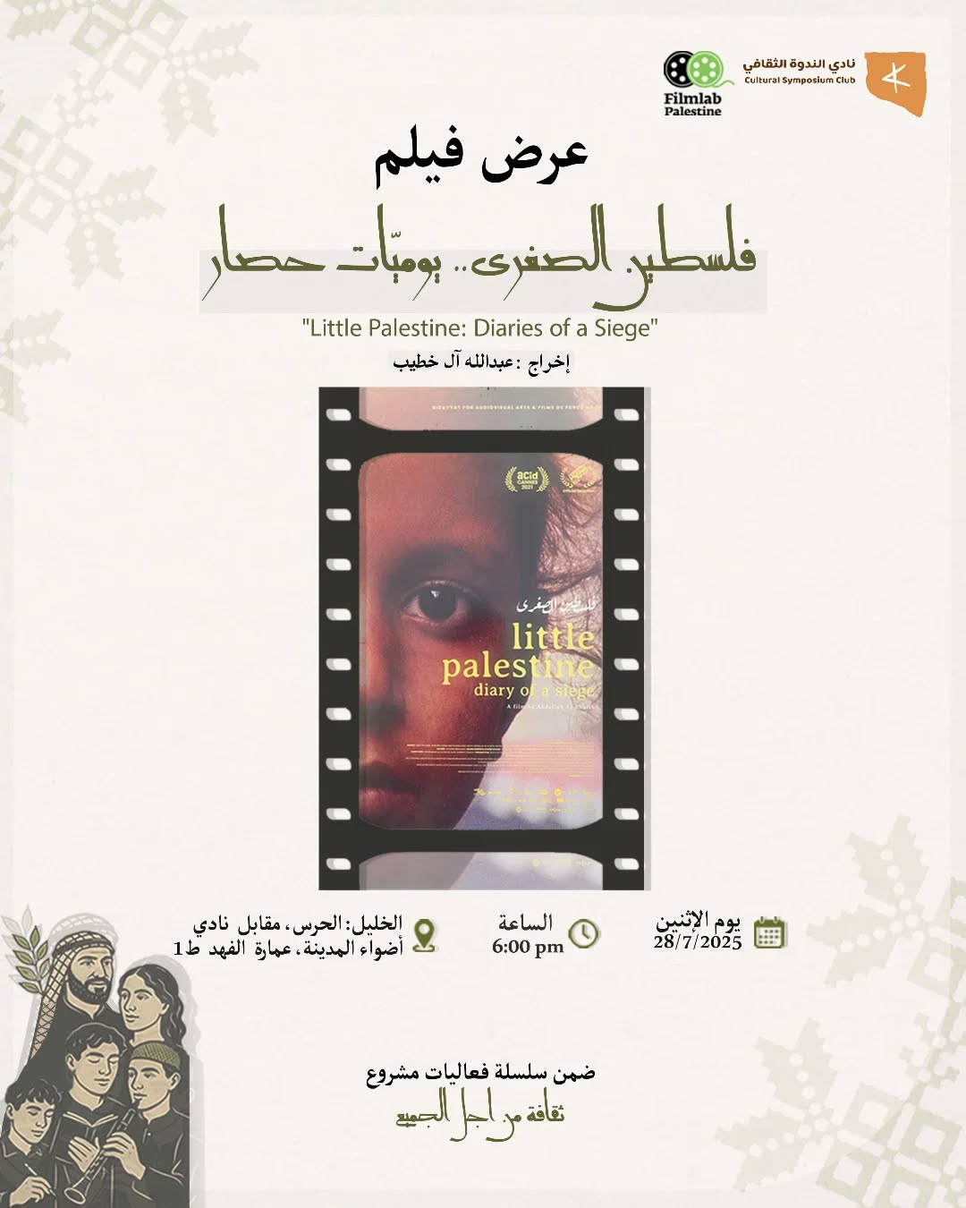 عرض ونقاش فيلم (فلسطين الصغرى: يوميات حصار) للمخرج عبد الله آل خطيب،