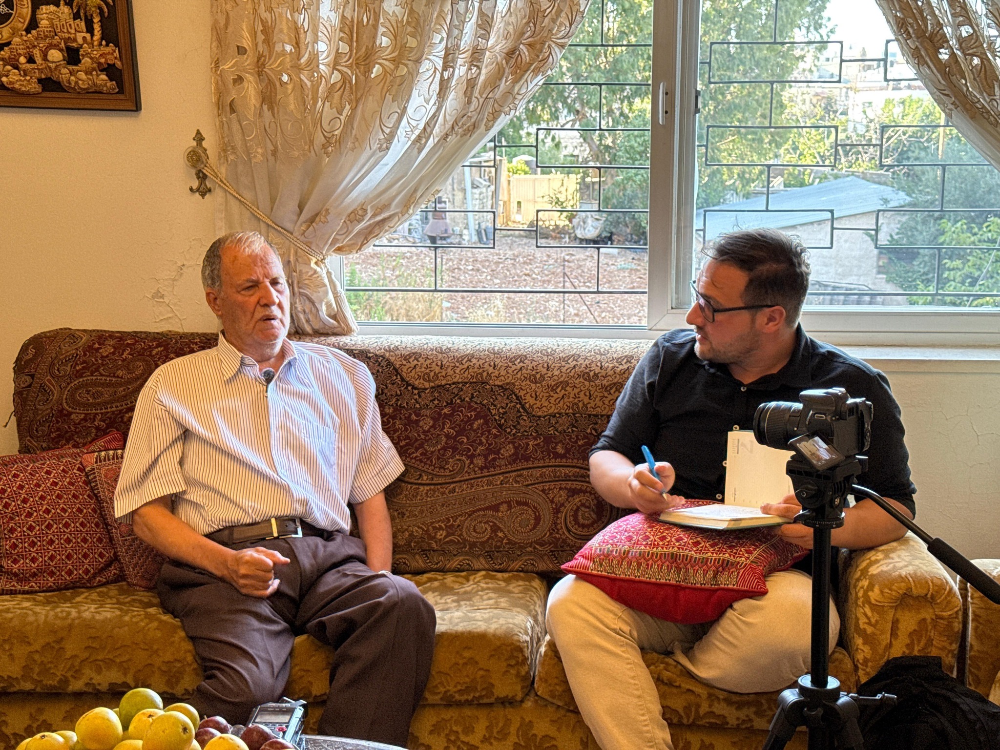 جانب قصير من اللقاء الطويل والرائع يوم أمس الأربعاء 25/6/2025 مع السيد محمد مصباح الشلودي مواليد مدينة الخليل عام 1941م